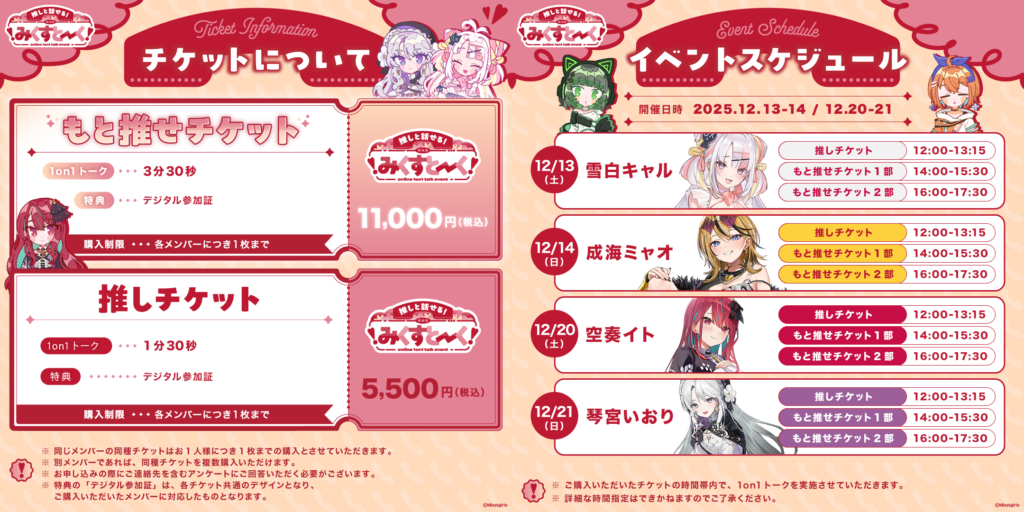 * 特典の「デジタル参加証」は、各チケット共通のデザインとなり、ご購入いただいたメンバーに対応したものとなります。