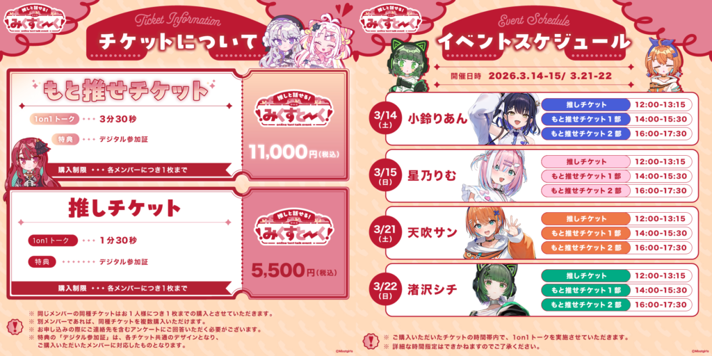 この度、オンライン1оn1イベント❣️みくすとーくvоl.7❣️ の参加チケットの申込みを開始いたしました。